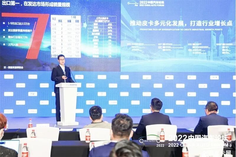 11月8日,作为国内三大顶级汽车论坛之一的2022中国汽车论坛在上海嘉定拉开序幕。10日上午,“推动皮卡多元化发展,打造行业增长点”皮卡专题论坛召开,行业专家、皮卡车企高层及相关产业代表等共同出席,围绕皮卡行业高质量发展建言献策,共谋皮卡发展新格局。会上,上汽大通汽车有限公司皮卡首席产品官赵胜利发表“如何打造一款全球化皮卡产品”主题演讲,阐述对扩展海外皮卡市场方面的见解。