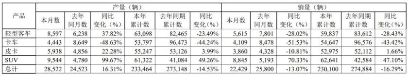 日前,江铃汽车公布了2022年10月的整体产销情况。公告显示,10月份,江铃汽车生产整车28522辆,同比增长16.31%;销售整车22429辆,同比下降13.07%。2022年1-10月江铃汽车累计销售整车233464辆,同比下降14.53%。