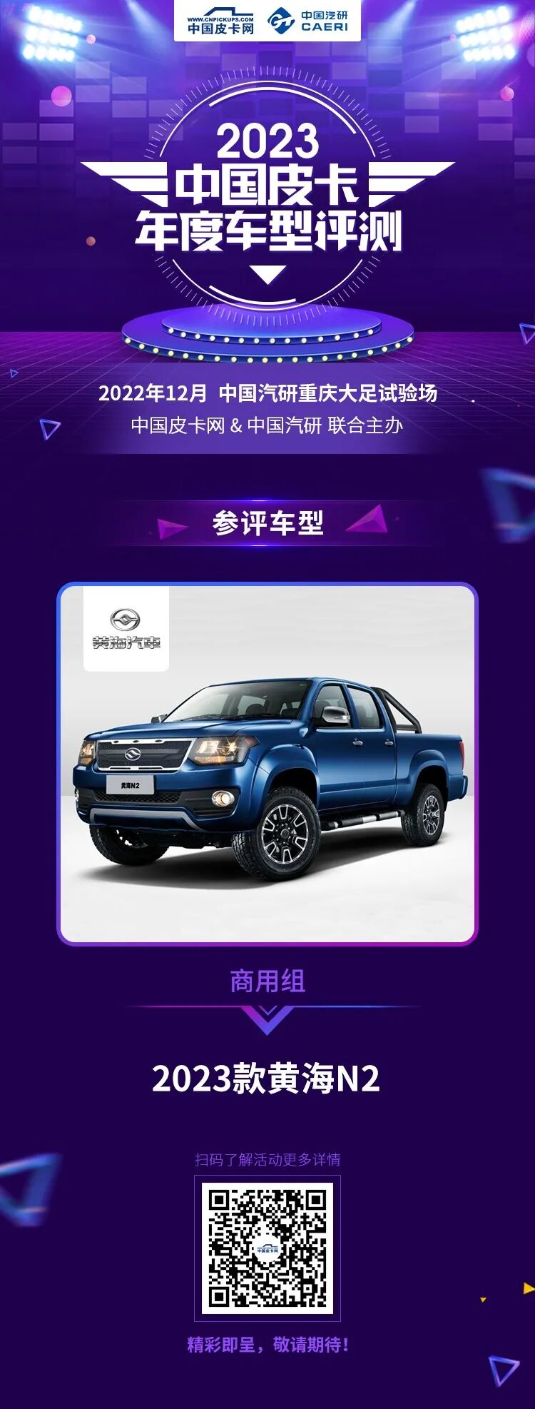 12月初,国内皮卡市场一年一度的大考——中国皮卡年度车型评测即将在重庆启幕。作为国内皮卡行业唯一的实车测评类活动,年度评测以公平、公正、客观、真实著称,获得了中国皮卡市场的广泛认可。新一届年度评测启动报名环节后,主流皮卡车企踊跃参与,老将黄海皮卡再度前来,派出了旗下最新款黄海N2参战。