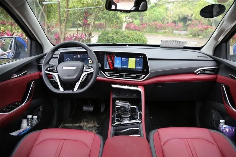 外观部分,2023款大将军依然保持现款造型,但车身采用了灰色涂装,为新款车型提升了整车质感。据悉,该车身颜色很有可能是双联屏车型独有的选择。车辆内部变化较大,新款大将军将仪表盘与中控屏集成在同一块区域中,整体感更强。屏幕主色调为蓝色,能看到中控屏具备多媒体、导航、语音控制和座椅调节功能等,并且车联网功能同样配备,达到主流配置水平。