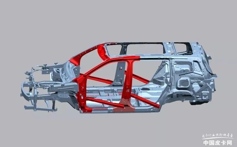 承载式皮卡和绝大部分家庭代步的车型采用了相同的结构,比如说我们常见的轿车、城市SUV、MPV或者是面包车,目前市场上绝大部分乘用车都采用了承载式车身结构。其结构特点就像是用钢板焊接出来的车身框架,也被称为笼式车身结构。