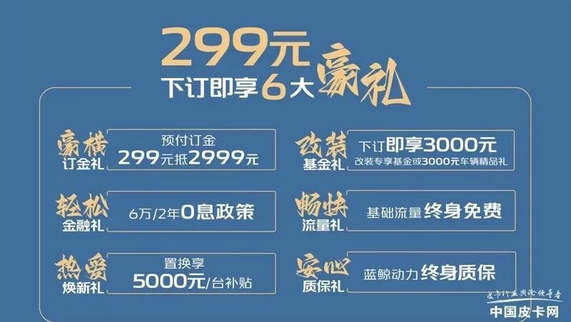 12月正式到来,再过不久2022年就过去了。眼下正值年底冲刺期,各皮卡厂家为了冲量,陆续放出了最后一波优惠政策,经销商也在4S店开展了不同程度的促销活动来提升销量,以此减轻全年的任务目标压力。今天我们便来看一下最新推出优惠礼包的皮卡产品有哪些。