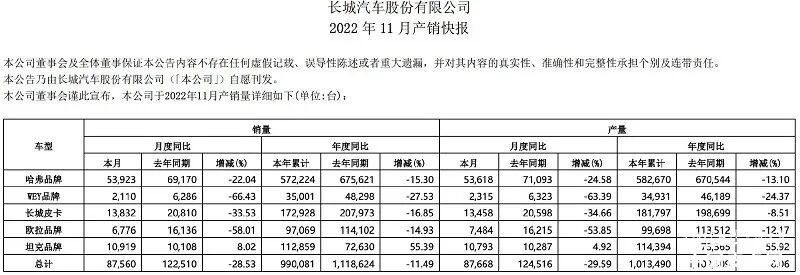 日前,长城皮卡公布了最新一组产销数据。数据显示,长城皮卡2022年11月共计销售13832台,今年1-11月累计销售172928辆。其中,长城炮11月销售10369辆,累计28个月销量过万,蝉联皮卡销量冠军。