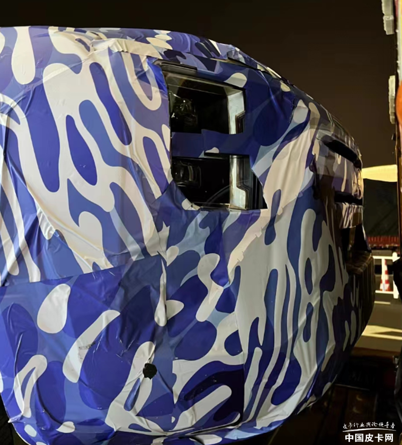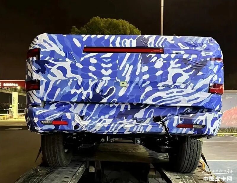 外观部分仍然带有非常厚重的伪装,可以看到前大灯采用比较方正的结构,营造硬派的风格。车身侧面看的更加清晰,整体比例非常协调。车头部分依然十分紧凑,在货箱右侧设置了两个充电插口,预计是快充和慢充。有快充,预计该车的电池容量不会太小,从而推断该车将会有不错的纯电续航里程。轮胎尺寸为265/65R18,配合六条幅花瓣轮毂,样式非常时尚。