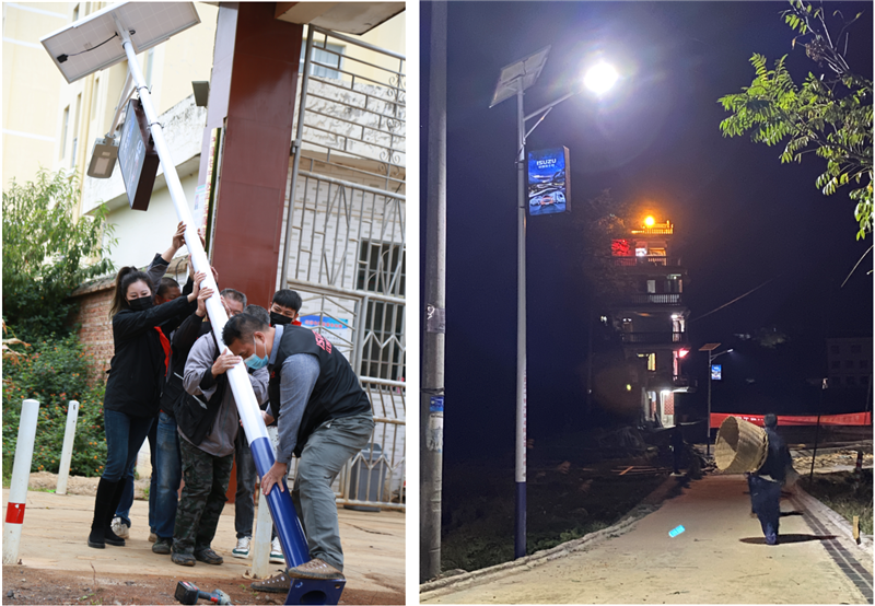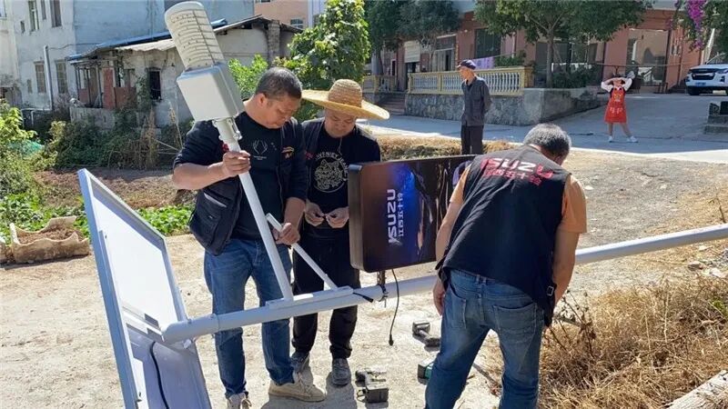 同时,与往年相比,严峻的疫情形势为安装工作带来了更大的考验。点亮计划的援建乡镇大多地处偏僻,路灯的排布也难以集中,工人师傅为了能完成更多安装工作,经常早晨5点多就启程出发。而为了尽快完成工作,降低疫情风险,也为了更早为乡村带去光明,工程队加班加点成为了常态。