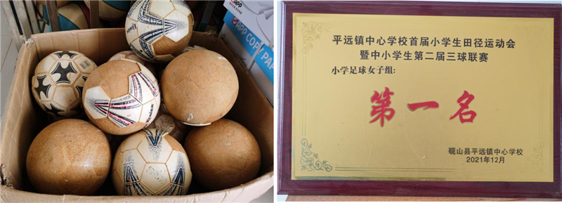 “我们学校的场地是洋灰地,对皮球磨损得快,这些足球都是老师们自费买的,我们不舍得踢,怕踢坏了没得用,也不想给老师们再增加负担。要能有新的足球,哪怕只有一个,那该多好啊!”孩子们说。