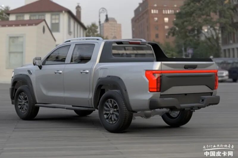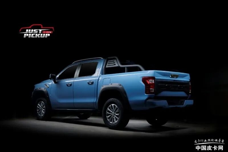 车辆采用传统的四门五座设计,尾部采用了半环绕式尾灯组,夜晚点亮后视觉效果极佳。下杠为传统的独立式设计,整体造型简单,下方还预留方形拖车接口。同时,新车还配备了与乘用车相同的大尺寸多条辐轮圈。