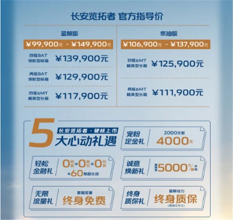 12月22日,长安览拓者正式上市,官方指导价为9.99-14.99万元。其中,蓝鲸汽油版价格区间为9.99-14.99万元,柴油版价格区间为10.69-13.79万元。值得一提的是,在上市前相继完成节油、陡坡、拖拽等多项挑战后,长安览拓者在此次发布会上还成功挑战了汽车侧两轮往返绕桩的吉尼斯世界记录,并创造了38.41秒的新世界纪录。