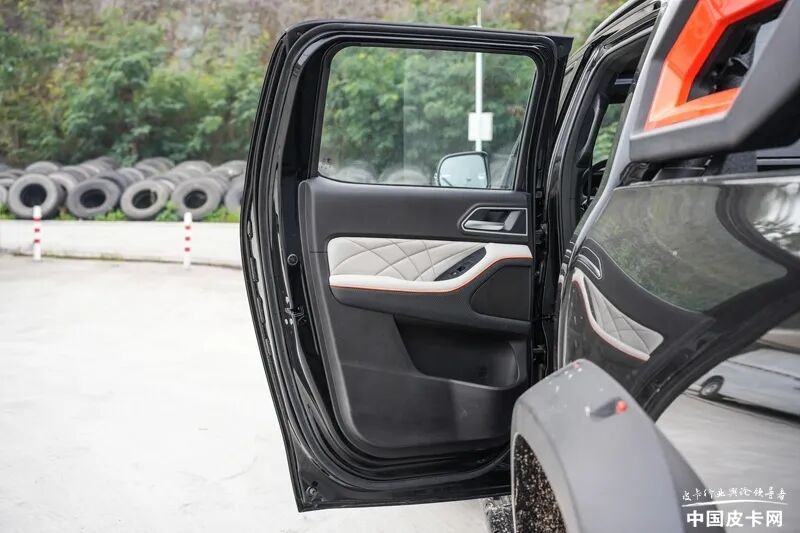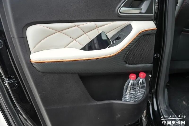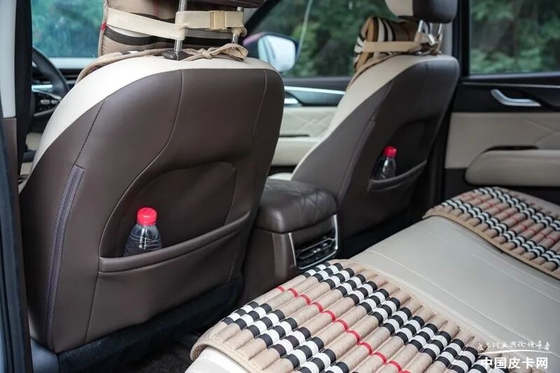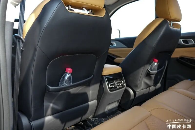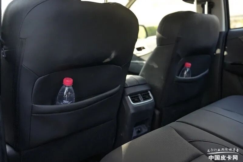 长城炮黑弹前排座椅后方带有储物袋设计,可放置文件与水瓶,此处+1分。长城炮黑弹后排储物能力总计1分。