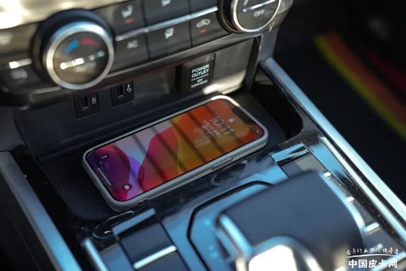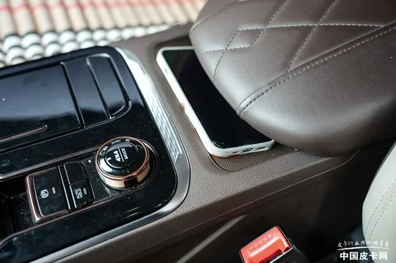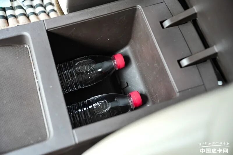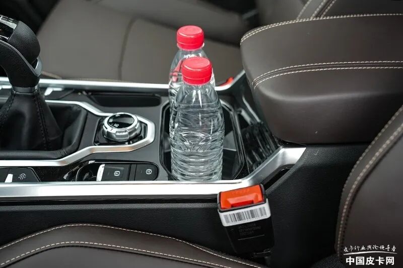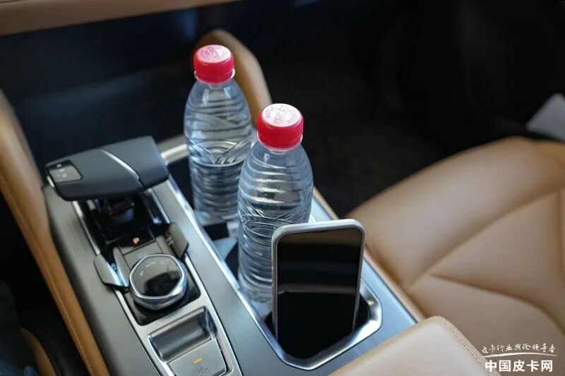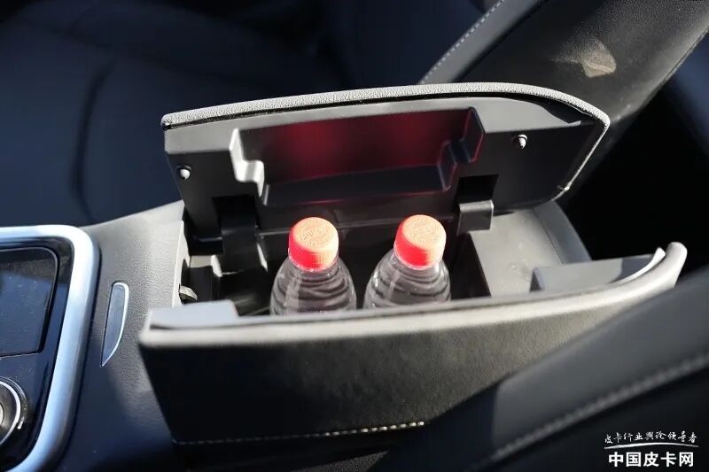 江西五十铃铃拓GANK中央通道前方可放置手机,并且支持无线充电,此处+2分;中央通道中部提供有1个杯槽设计,此处+1分;中央通道后方扶手箱设计为对开盖,虽然水瓶放进去改不上盖,但可以关闭一侧,充当扶手,另一侧开启,放置水瓶,十分灵活,此处+2分;江西五十铃铃拓GANK中央通道储物能力总计5分。