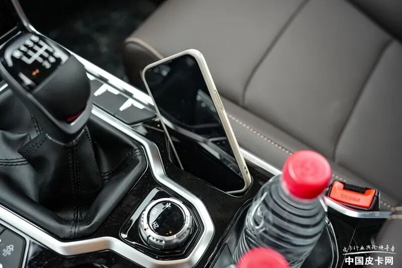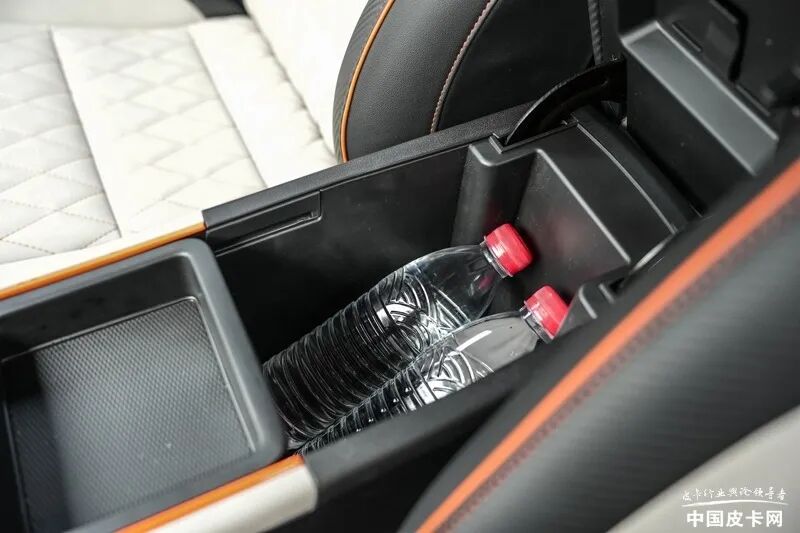 长城黑弹中央通道前方可放置手机,此处+1分;中央通道中部提供有两个杯槽设计,此处+2分;中央通道后方扶手箱可完全将水瓶装入,并且前方带有储物滑槽设计,提升储物灵活度,此处+3分;中央扶手盖上方带有卡槽设计,可放置行驶本、驾驶本、卡片类型物品,此处+1分。长城炮黑弹中央通道储物能力总计7分。