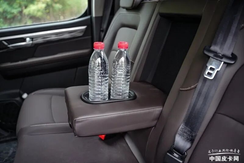 江淮悍途绿魔版前排座椅后方带有储物袋设计,可放置文件与水瓶,此处+1分;后排座椅带有可翻折扶手,并且提供有2个水杯槽设计,此处+2分。江淮悍途绿魔版后排储物能力总计3分。