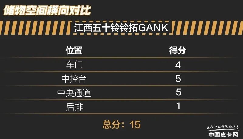 江西五十铃铃拓GANK前排座椅后方带有储物袋设计,可放置文件与水瓶,此处+1分。江西五十铃铃拓GANK后排储物能力总计1分。