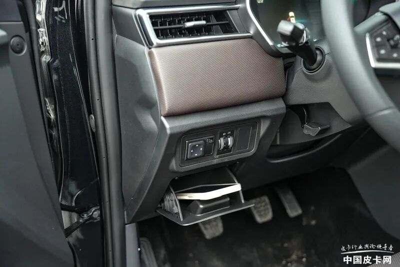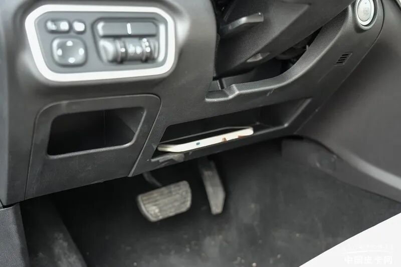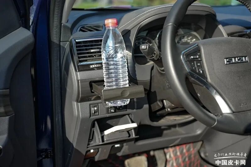 江西五十铃铃拓GANK中控台最左侧设计有储物槽,可放置手机等小物件,+1分;方向盘下方位置非常巧妙的设计有储物槽设计,空间较大,此处+1分;中控台两侧空调出风口均配备有可收纳杯架设计,此处+2分;副驾驶手套箱为常规设计,此处+1分。江西五十铃铃拓GANK中控台储物能力总计5分。