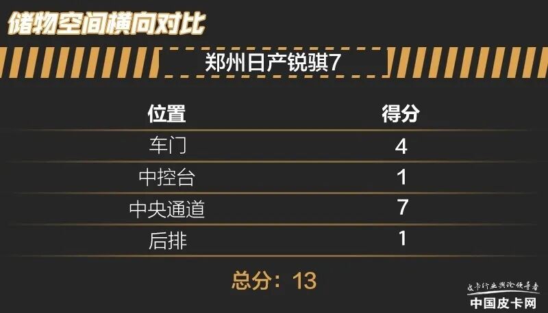 郑州日产锐骐7中控台副驾驶手套箱为常规设计,此处+1分。郑州日产锐骐7中控台储物能力总计1分。