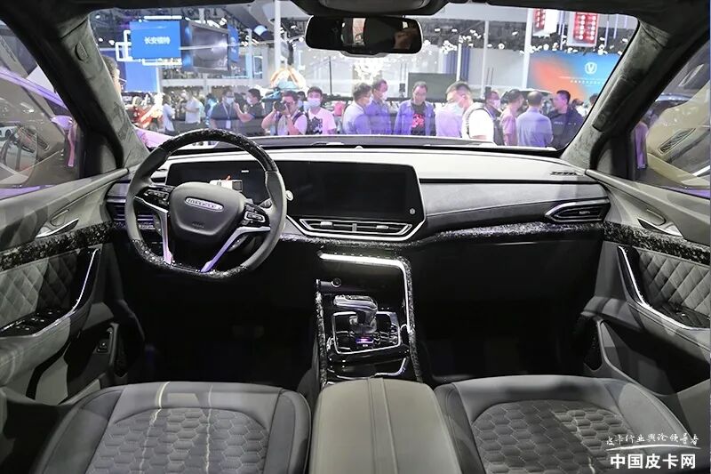上汽牛·魔王是上汽大通官方对T90进行的越野性研发,个性化的设计在本次成都车展上十分吸睛。相比普通版,上汽牛·魔王整体车高提升了11cm,轮距加宽了15cm,接近角在原厂基础上增加15度,离去角增加10度。车辆外观采用AT-X防爆装甲漆、IP65防水级别rock rail双侧电动踏板,车辆内部还配备了锻造炭纤维内饰。