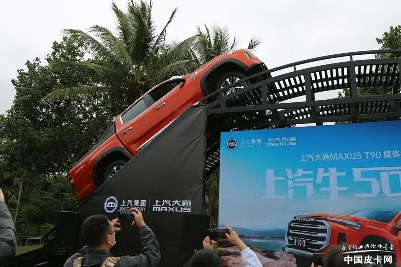在爬坡测试中,牛·魔王切换到低速四驱模式,凭借着倍耐力全地形轮胎非常不错的抓地力,以及500N·m强大的扭矩,也成功爬到坡顶。而且原版T90双增压车型在上市之初就进行过爬坡测试,也相当轻而易举。作为改装版的牛·魔王面对测试坡度依然稳健,并且在这三辆改装组的皮卡中,上汽牛·魔王的爬坡所用时间最短,大扭矩+好轮胎成为了关键因素。