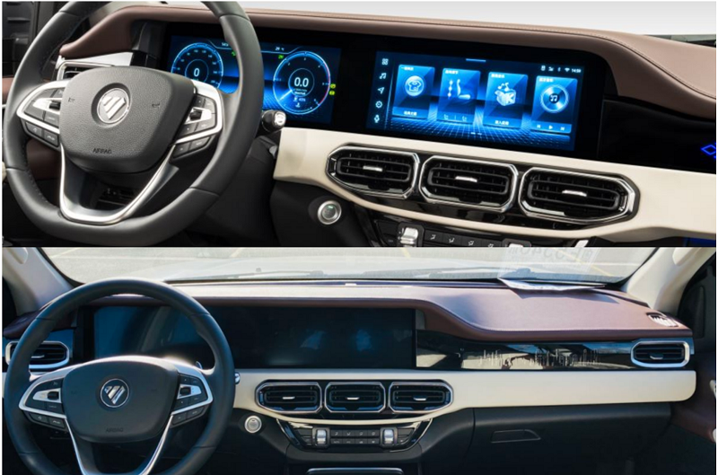 2023款大将军皮卡在外观上与现款在售车型保持一致,前脸以“龙首”为设计灵感,硬派气质明显,车身采用高级哑光灰专属色,更具质感。内饰上的升级是这款车的核心亮点,新车采用了类似奔驰的双联屏设计,两块屏幕的尺寸均为12.3英寸,仪表盘与中控屏集成在同一块区域中,整体感更强;副驾驶前方中控台采用了发光饰板,配合车门的开关进行点亮闭合,提升了车内整体的氛围感;新车还配备了7色氛围灯,采用环抱式驾驶舱设计等,整车更偏向乘用化车型。