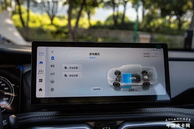 在创新方面,雷达RD6也是先行者,国内首创的6kW放电能力,让它可以在户外解锁更多的玩法。虽然目前有一部分传统燃油皮卡在货厢部分也新增了放电口,可放电功率较小,甚至一个烧水壶都带不动,功率太小限制了户外的可玩性,雷达RD6所达到的6kW放电能力就没有这方面顾虑。
