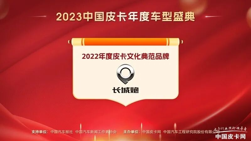 “心有所往,终至所归”,2022年,长城炮在普及皮卡文化的道路上不断前行,为皮卡在全球流行起来做出了重要贡献,最终获得“2022年皮卡文化典范品牌”。