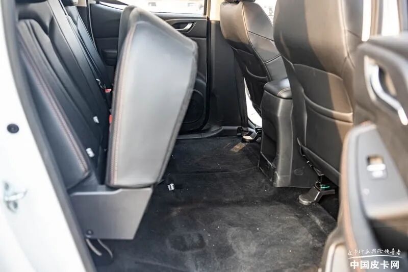全车座椅采用皮革包裹,主要接触面进行了打孔处理,保证夏季通风性。前排座椅为手动调节,其中主驾驶座椅可调整座椅高低;后排座椅靠背支持放倒功能,也可以将坐垫上翻,扩充储物空间。