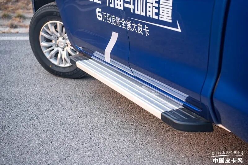 卡路里在货厢宽度与高度上也是略大于主流中型皮卡,所以货厢容积占有优势,这一点可以从尾部厚重的货厢造型看出。其余外部配置方面,后货厢配备有龙门架;车侧提供了上车脚踏;轮胎采用玲珑品牌,规格为235/70 R16;四轮均采用了碟刹配置。