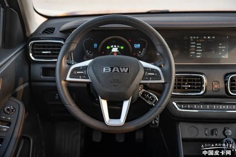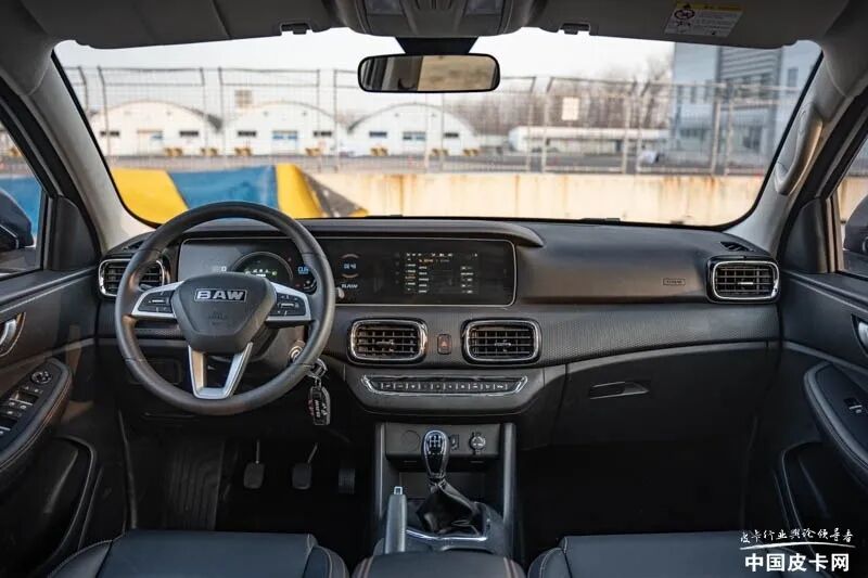 卡路里外观造型的设计明显区别于10万以内工具皮卡,来到车内,这种感觉更为明显。中控台采用了分层设计,其中最上层的双联屏设计为这款车的内饰加分不少。