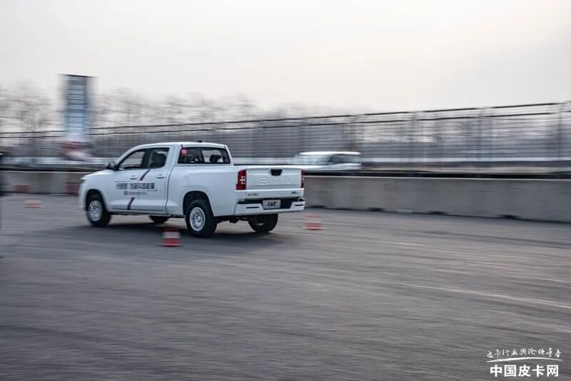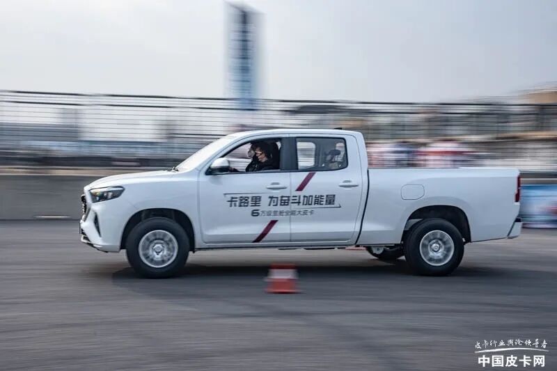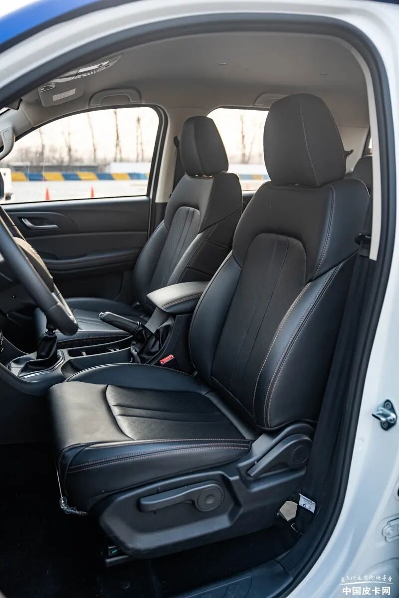 卡路里的底盘调教在前排是明显的舒适化感受,减震很软,行驶过程中的颠簸主要源自后部整体桥+钢板弹簧结构带来的,毕竟日常拉货需求,空载状态的颠簸,是目前这种结构皮卡的共通特点,载重之后颠簸自然消除。不大的场地对于车辆的NVH静音性主要表现在中低负载阶段,车速很难超过70公里每小时,这个时速下,车辆整体的静音能力可以达到10万元级皮卡水平,还是相当可以的。而且在绕桩、紧急变线等激烈驾驶的情况下,车内也没有出现异响,值得肯定。