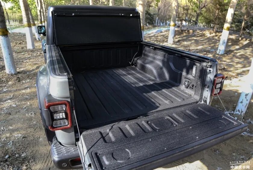角斗士可以看成是牧马人皮卡版,车身前半部分基本上与牧马人一致,大尺寸7孔进气格栅非常有标志性,两侧圆大灯也保持了牧马人的风格。先行版车型为可拆卸硬顶车型,也是国内首款可以敞篷的皮卡。新车配备原厂三折式硬质后尾箱盖,货箱内部喷涂Mopar定制防刮内垫,并带有230V电源和400W逆变器,方便野外接电使用。