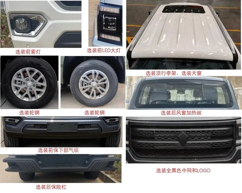 根据目前申报信息显示,江铃大道将会配备天窗、倒车影像、360度全景影像、LED前大灯组、尾箱龙门架以及尾箱踏板。