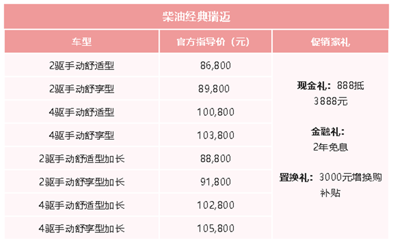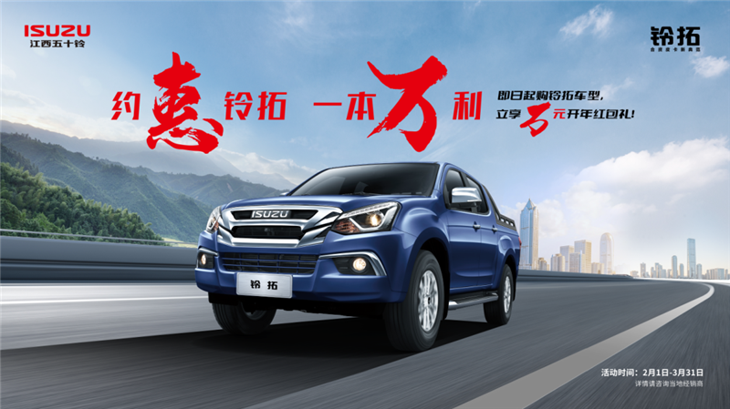 2月1日至3月31日期间,购买铃拓柴油车型的用户,可获得两年免息的金融政策,并享受最高达1.1万元的开工现金礼,部分地区还有3000元置换补贴(详情请咨询当地经销商)。同时,购买柴油经典瑞迈可享888元抵3888元现金礼、2年免息金融礼,以及3000元增换购补贴等,综合优惠最高可达近万元,江西五十铃以诚意之举,助力有志群众创业致富。