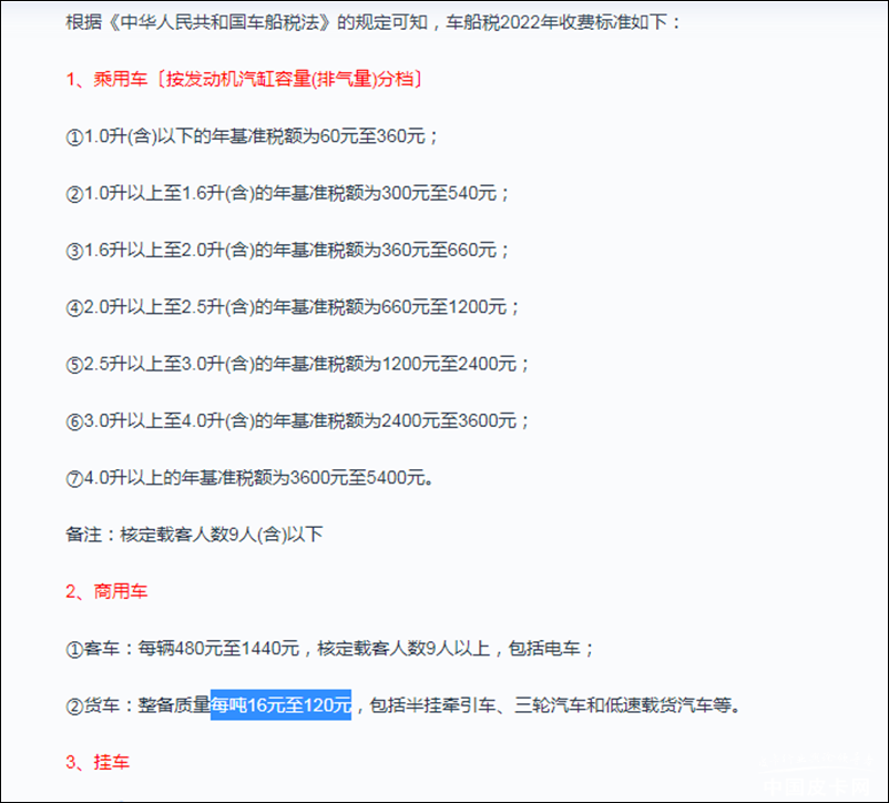 另外,皮卡目前按照货车来结算车船税,而货车的车船税与整备质量有关,每吨16元至120元,这样的话一般2吨左右的皮卡车船税最多在240元左右,相当便宜。但当变身乘用车之后,就要按照排量来收取车船税了,普遍的中型皮卡采用2.0T发动机,按照乘用车车船税分档来看,符合1.6升以上至2.0升(含),对应的年基准税额为360元至660元;而更大排量的车型车船税则要更高了。