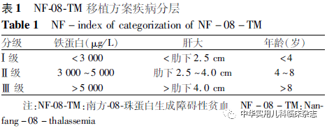资料与方法1.1 一般资料 回顾性研究。收集2012年1月至2020年12月在深圳市儿童医院血液肿瘤科HSCT中心接受allo-HSCT的446例珠蛋白生成障碍性贫血患儿的临床资料。其中男280例,女166例,中位年龄6.83岁(1.92~17.83岁)。移植类型:单倍型239例,亲缘人类白细胞抗原(HLA) 8/10~10/10相合149例(其中同胞全相合129例,父母全相合7例,父母9/10相合5例,父母8/10相合4例,同胞9/10相合4例),无关HLA 9/10~10/10相合58例(其中全相合50例,9/10相合8例)。干细胞种类:脐带血21例,骨髓20例,外周血107例,骨髓+外周血38例,骨髓+脐带血7例,外周血+脐带血125例,骨髓+外周血+脐带血128例。HSCT开始时患儿均无皮肤异常,患儿均随访至2021年6月。本研究通过深圳市儿童医院医学伦理委员会批准(批准文号:深儿医伦审2021102号),患儿监护人均知情同意,并签署知情同意书。1.2 预处理方案 患儿均接受清髓性预处理,单纯同胞脐带血移植采用环磷酰胺+氟达拉滨+白消安+塞替派为主的预处理方案,其他类型移植采用环磷酰胺+氟达拉滨+白消安+塞替派+兔抗人胸腺免疫球蛋白/抗人T细胞免疫球蛋白为主预处理方案,少数患儿未使用塞替派。根据患儿珠蛋白生成障碍性贫血疾病分级、年龄及白消安浓度调整白消安剂量。1.3 珠蛋白生成障碍性贫血疾病分级 重型珠蛋白生成障碍性贫血疾病分级参照文献[2](表1)。