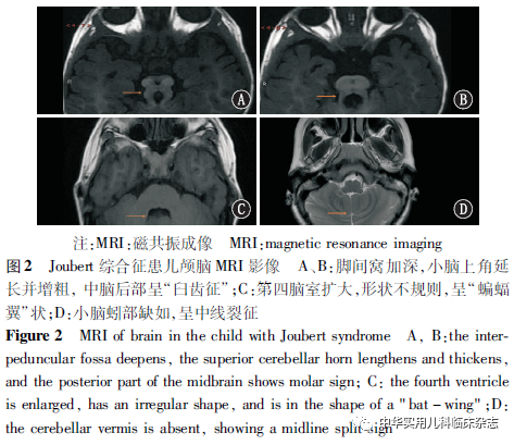 作者:张会婷1 刘春艳2 曾琦3 叶园珍3 林素芳3 邹东方3 廖建湘3通信作者:廖建湘,Email:liaojianxiang @sina.vip.com作者单位:1中国医科大学深圳市儿童医院神经内科,深圳 518038;2深圳市儿童医院呼吸内科,深圳 518038;3深圳市儿童医院神经内科,深圳 518038本文刊发于 中华实用儿科临床杂志,2022,37(15):1184-1186.引用本文:张会婷,刘春艳,曾琦,等.KIAA0586基因突变所致Joubert综合征1例[J].中华实用儿科临床杂志,2022,37(15):1184-1186.DOI:10.3760/cma.j.cn101070-20210330-00378.