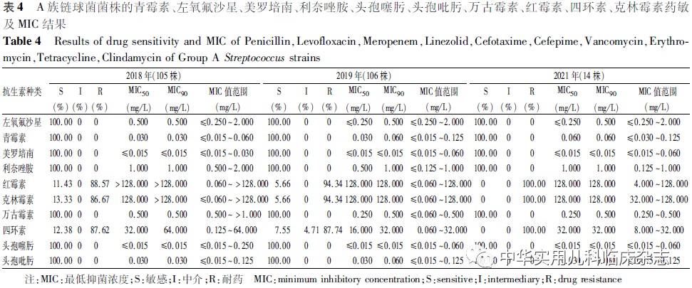 A族链球菌;emm基因;药敏试验;儿童