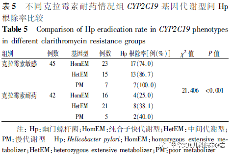 作者:周西西 耿甜 李中跃通信作者:李中跃, Email:lizhongyue1001@hotmail.com作者单位:重庆医科大学附属儿童医院消化科,国家儿童健康与疾病临床医学研究中心,儿童发育疾病研究教育部重点实验室,儿科学重庆市重点实验室,重庆 400014本文刊发于 中华实用儿科临床杂志,2022,37(23):1797-1802.引用本文:周西西,耿甜,李中跃.重庆地区CYP2C19基因多态性对儿童幽门螺杆菌根除疗效的影响[J].中华实用儿科临床杂志,2022,37(23):1797-1802.DOI:10.3760/cma.j.cn101070-20220509-00524.