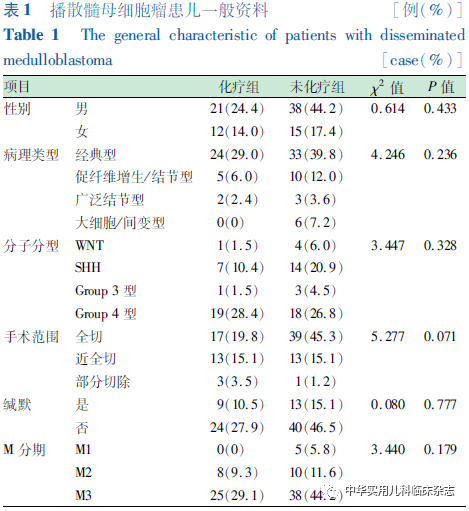 结果2.1 一般资料 86例患儿中,83例有病理分型资料,67例有分子分型资料。2组患儿的性别、病理类型、分子分型、术后缄默状态、M分期比较,差异均无统计学意义(均P>0.05),见表1。