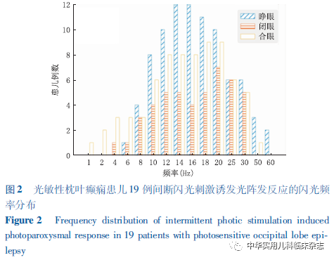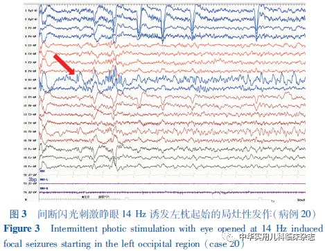 资料与方法1.1 研究对象 回顾性研究。选择2006年1月至2019年12月在北京大学第一医院儿科神经专业门诊就诊的22例POLE患儿为研究对象。纳入标准:(1)临床病史或脑电图检查支持视觉刺激触发的枕叶起源局灶性发作;(2)脑电图IPS诱发了光阵发反应(photoparoxysmal response,PPR)和/或光惊厥反应(photoconvulsive response,PCR);(3)神经系统检查正常。排除标准:(1)患儿年龄<1岁;(2)严重的发育落后及神经认知倒退;(3)其他癫痫综合征,如眼睑肌阵挛及进行性肌阵挛癫痫;(4)影像学有明确的结构性异常。本研究已通过北京大学第一医院生物医学研究伦理委员会批准[批准文号:2016(1135)],患儿监护人均签署知情同意书。1.2 方法 1.2.1 脑电图数据的收集 采用国际标准10-20系统(Neurofax;Nihon-Kohden,Tokyo,日本)进行4 h视频脑电图监测,至少涵盖一个清醒-睡眠-觉醒周期。患儿均行IPS诱发试验、睁闭眼试验和过度换气诱发试验。根据国际标准,IPS诱发试验采用直径10 cm的圆形闪光灯在昏暗的环境中进行,闪光灯距离患儿鼻根处30 cm,依次包括睁眼、闭眼、合眼3组眼状态,每组眼状态均按照1 Hz、2 Hz、4 Hz、6 Hz、8 Hz、10 Hz、12 Hz、14 Hz、16 Hz、18 Hz、20 Hz、60 Hz、50 Hz、30 Hz、25 Hz的顺序进行完整频段闪光。每个频率闪光10 s,间歇10 s后继续下一频率。原则上当IPS诱发出广泛性放电或癫痫发作时应即刻停止IPS诱发试验。PPR定义:IPS诱发出棘慢波或多棘慢波等癫痫样放电而不伴临床症状。PCR定义:IPS诱发出棘慢波或多棘慢波等癫痫样放电,同时伴临床发作。所有脑电图数据至少由2位有经验的神经电生理医师进行评估。1.2.2 临床资料收集 收集患儿性别、年龄、围生期情况、个人史、家族史(偏头痛、热性惊厥和癫痫)等一般资料。与POLE相关临床信息包括起病年龄、诱发因素、发作相关症状、发作持续时间及发作频率、发育里程碑、体格检查、治疗药物及治疗反应。辅助检查包括视频脑电图、头颅磁共振成像(magnetic resonance imaging,MRI)和血尿代谢筛查等。1.2.3 病例随访资料 随访内容包括末次随访的年龄、癫痫发作的控制情况、病程中使用的抗癫痫发作药物(anti-seizure medications,ASMs)及患儿的智力运动发育情况等。