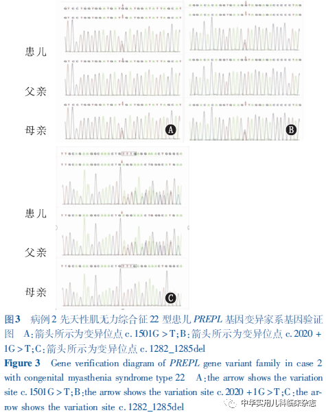 作者:唐美玲 李文辉 周水珍通信作者:周水珍,Email:szzhou@shmu.edu.cn 作者单位:国家儿童医学中心 复旦大学附属儿科医院神经科,上海 201102唐美玲现在南通瑞慈医院/扬州大学第四临床医学院儿科,南通 226010本文刊发于 中华实用儿科临床杂志,2023,38(5):380-383.引用本文:唐美玲,李文辉,周水珍.PREPL基因变异致先天性肌无力综合征22型2例并文献复习[J].中华实用儿科临床杂志,2023,38(5):380-383.DOI:10.3760/cma.j.cn101070-20220726-00903.
