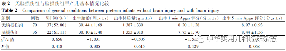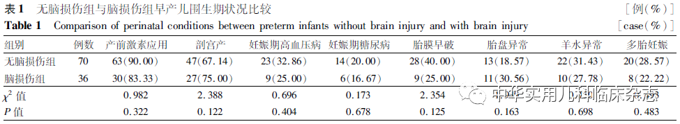 结果2.1 两组早产儿围生期状况比较 2组早产儿在产前激素应用、生产方式、母孕期情况等方面比较,差异均无统计学意义(均P>0.05),见表1。
