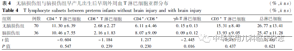 脑损伤;婴儿,早产;脑室周围白质软化;弥散性脑白质损伤;γδ-T淋巴细胞;淋巴细胞亚群