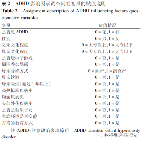 作者:高小焱1 迪丽努尔·吾甫2 左彭湘1 刘芳芳1 何红瑶1通信作者:左彭湘,Email:zuo_pengxiang@sina.com作者单位:1石河子大学医学院,石河子 832000;2图木舒克市教学研究和师资培训中心,图木舒克 843806本文刊发于 中华实用儿科临床杂志,2022,37(13):1001-1005.引用本文:高小焱,迪丽努尔·吾甫,左彭湘,等.注意缺陷多动障碍7~16岁儿童影响因素分析及Nomogram预测模型的建立与验证[J].中华实用儿科临床杂志,2022,37(13):1001-1005.DOI:10.3760/cma.j.cn101070-20210809-00945.