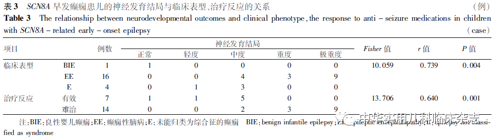 目的 分析SCN8A早发癫痫的临床特点,随访患儿的神经发育状况,探讨SCN8A早发癫痫共患神经发育障碍的影响因素。方法 回顾性分析2017年1月至2021年2月广州市妇女儿童医疗中心及昆明市儿童医院诊治的SCN8A早发癫痫患儿21例(男13例,女8例;年龄4个月~8岁,平均31.6个月),所有病例经二代测序、Sanger一代验证,根据美国医学遗传学与基因组学学会分类指南评为可能致病或致病。收集所有患儿的起病年龄、发作形式、发作频率、神经发育结局、脑电图、头颅磁共振成像(MRI)资料,随访患儿起病后的药物治疗情况、发作演变或改善、脑电图演变、神经发育状况并分组。采用Fisher′s 精确检验分析各因素对患儿神经发育过程及结局的影响,并计算相关系数。结果 21例患儿平均起病年龄0~9个月,随访时间4个月~8年,3例死亡。早发婴儿癫痫性脑病16例(76.2%);非脑病的癫痫患儿5例(23.8%),其中1例婴儿良性癫痫。14例(66.7%)为药物难治性癫痫(DRE)。发育正常者仅1例;发育迟滞,但有进步11例;全面发育倒退或停滞9例。起病年龄小(Fisher=9.517,P=0.020,r=0.571)、发作频率高(Fisher=10.512,P=0.003,r=0.572)、脑电图背景(Fisher=10.512,P=0.003,r=0.572)、脑电图放电(Fisher=8.288,P=0.008,r=0.542)、治疗前后脑电图变化(Fisher=10.437,P=0.009,r=0.586)影响癫痫发病后的神经发育过程。神经发育结局仅1例正常,1例轻度发育迟滞,7例中度发育迟滞,3例重度发育迟滞,9例极重度发育迟滞。临床表型(Fisher=10.059,P=0.004,r=0.739)、药物难治(Fisher=13.706,P=0.001,r=0.640)与神经发育结局密切相关。而发作形式、起病时的脑电图表现、突变位置与神经发育障碍的关系不大。结论 SCN8A早发癫痫常伴有不同程度的神经发育障碍,癫痫性脑病及药物治疗反应差将导致严重的神经发育障碍。