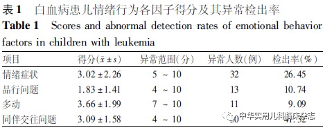 白血病;儿童;内化行为;外化行为;护理负担