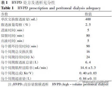 讨论以“高容量腹膜透析”、“儿童”、“急性肾损伤”为中文关键词分别检索 CNKI和万方数据库(建库至 2020 年 8 月),国内未见相关报道。再以“high volume peritoneal dialysis”、“pediatric”、“AKI”为英文关键词检索MEDLINE数据库(建库至2020年8月),可检出3篇文献[4-6],均为综述,其中2篇提及HVPD作为一种持续的肾脏替代治疗方式是治疗AKI较为经典PD处方[4,6],另1篇还提出自动化PD可减少护理工作量[5]。目前尚未见运用HVPD治疗儿童AKI的病例报道或队列研究。HVPD每次透析剂量与其他PD模式类似,为800~1 200 mL/m2,只是通过增加透析频率来提高透析效能,通常使用全自动腹膜透析机在24 h内交换18~22次,以达到较高的小分子溶质清除率[6]。Gabriel等[2]研究显示,若以35~44 L/d的透析液剂量治疗,其尿素Kt/V可达3.85±0.62,与血液透析对尿素的清除率相当。因此,此类透析模式可用于严重高分解代谢的AKI患者的治疗。但HVPD治疗儿童AKI患者的经验鲜有报道,HVPD能否为AKI患儿提供恰到好处的溶质清除、充分超滤以及血浆白蛋白的维持稳定有待明确。首先,HVPD能否为AKI患者提供充分的溶质清除,以纠正内环境紊乱?目前PD不作为AKI首选的肾脏替代治疗方式,主要是由于慢性PD的常规处方溶质清除效果有限,难以满足高分解代谢AKI患者的治疗所需。但近年有研究显示加大PD的剂量提高溶质清除率能满足AKI患者的代谢所需。如Chitalia等[7]的研究显示,持续PD和潮式PD均可将轻-中度高分解代谢的成人AKI患者的尿素氮维持在65 mg/dL左右,每周达成Kt/V 分别为1.80和2.43;Gabriel等[2]的前瞻性队列研究也显示,应用HVPD治疗成人AKI患者,每周达成Kt/V为3.8,在第4个透析周期后即可实现适当的代谢控制。本案例也获得了令人鼓舞的小分子溶质清除效果,平均每个透析周期SCr清除率为14.6 mL/min,达成Kt/V为0.4,SCr和Urea水平经过4个周期HVPD治疗后能稳定于250 μmol/L和10 mmol/L左右。同时,HVPD还能较快地纠正酸碱平衡和电解质紊乱,本例患儿的pH值和血钾水平在2个透析周期后即稳定于正常范围。Ponce等[8]研究也显示,HVPD与延长每日血液透析相似,均可在第2个透析周期后纠正高钾血症和酸中毒。其次,在危重症患儿的治疗过程中,HVPD能否实现足够的超滤量,是降低死亡率的另一重要因素。Brown等[9]的研究也显示,在维持性PD的成人中,超滤量低于750 mL/d与病死率增高密切相关。Gabriel等[2,10]和 Chitalia 等[7]的研究表明,成人HVPD每个周期的超滤量可达 2 L。治疗过程中,可以根据患者的容量平衡情况选择含葡萄糖浓度不同的腹透液(如G 2.5%、G 4.25%),以调整每个周期的超滤量。正如本研究所示,采用腹膜透析液(乳酸盐-G 2.5%)使得每个周期平均超滤量达0.84 L,可满足一个干体质量13 kg、初始容量负荷约38%的MODS患儿治疗所需,经过10 d的治疗患儿可维持干体质量,心衰明显改善。以往PD被认为可导致蛋白质大量丢失,但正如本研究的病例和Gabriel等[2]研究所示,在HVPD治疗AKI过程中,患者血清白蛋白水平并不会明显下降,因此,HVPD适合作为AKI患者肾脏替代治疗的备选方案之一。综上所述,本病例的治疗提示HVPD能提供有效的溶质清除、容量控制,且未导致严重低蛋白血症和高血糖,因此,其可能成为MODS患儿一种有效的肾脏替代治疗方式。