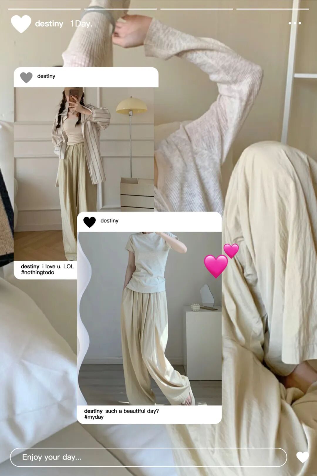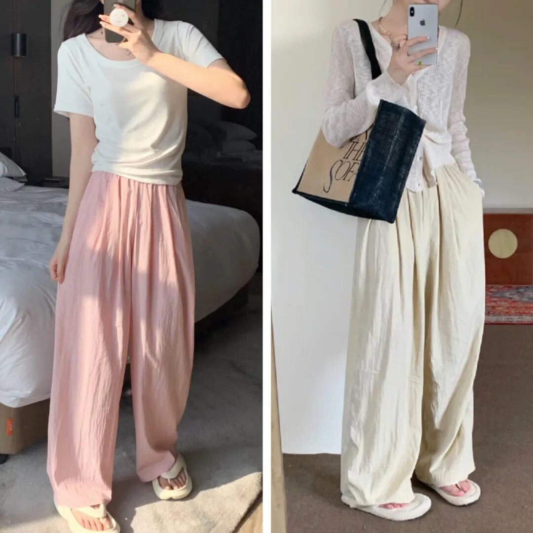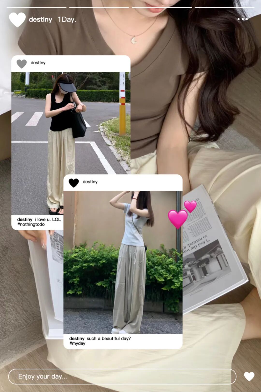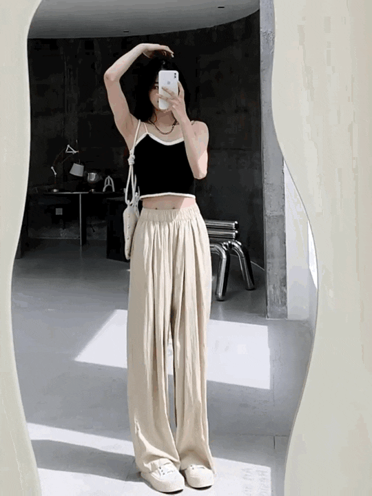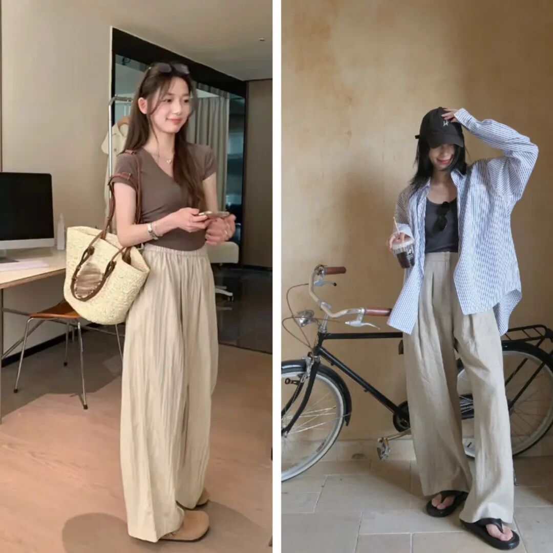 以阔腿裤作为基础原型,版型设计得更加夸张。通常是舒适凉爽的棉麻或者冰丝面料,垂度好,特别适合夏天。