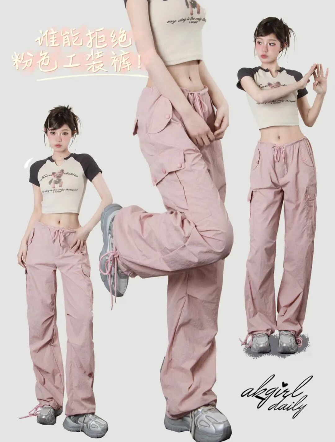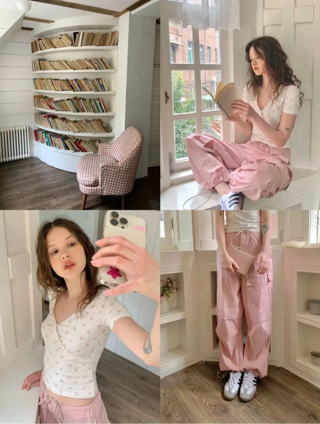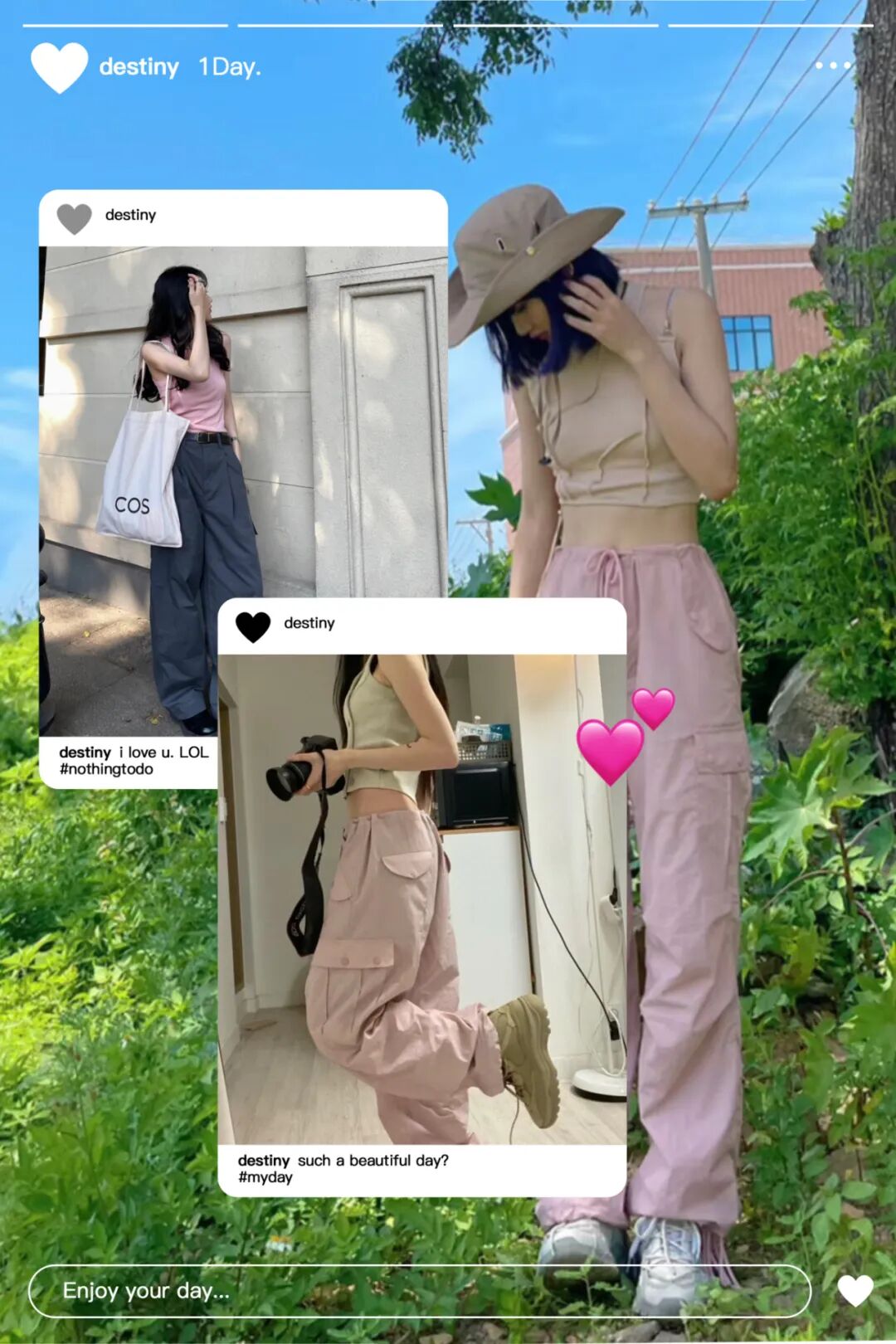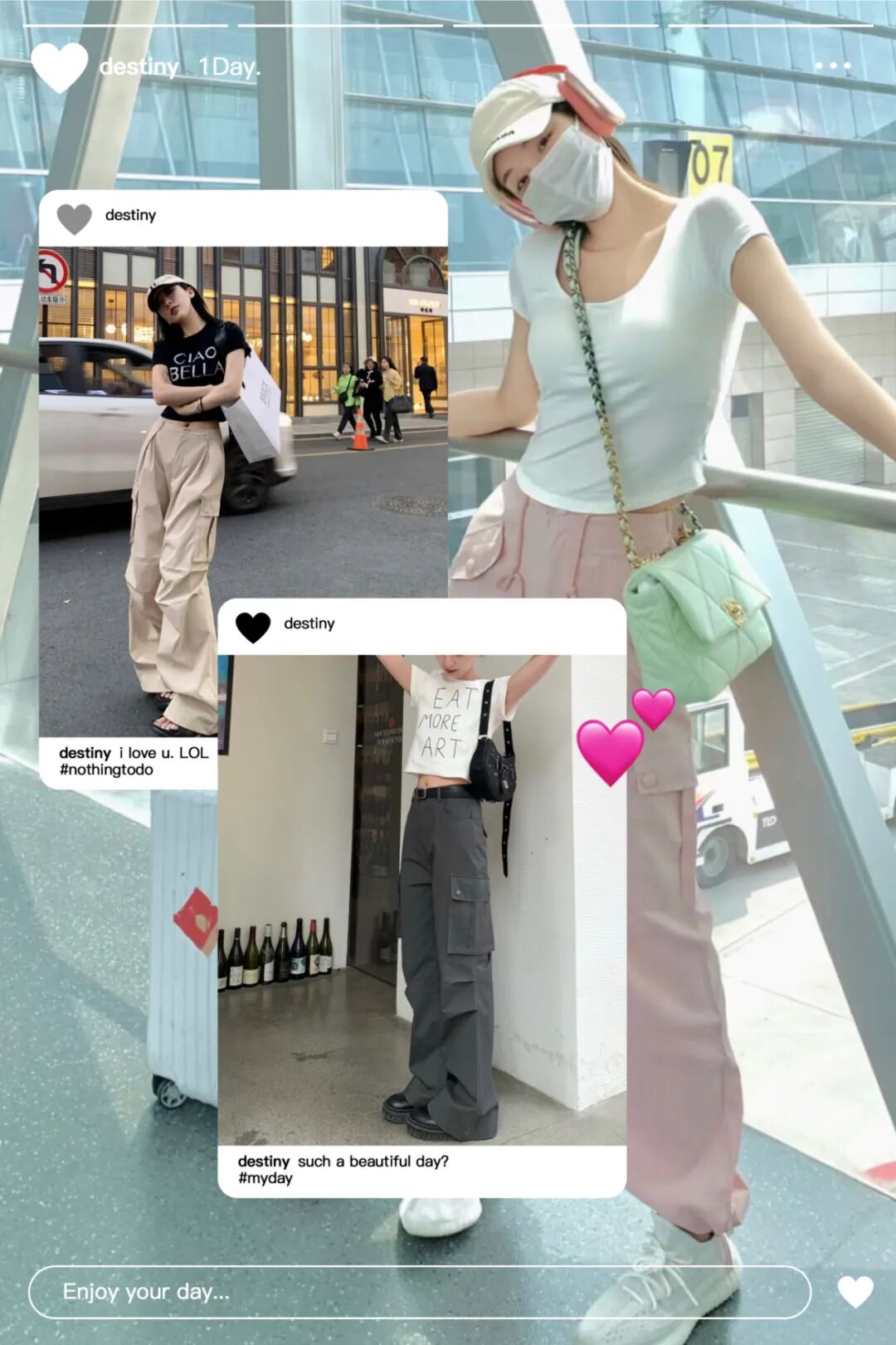 如果你是多巴胺女孩儿,不妨试试大热的粉色工装裤,也最适合夏天了,穿着拍照片会很上镜哟。