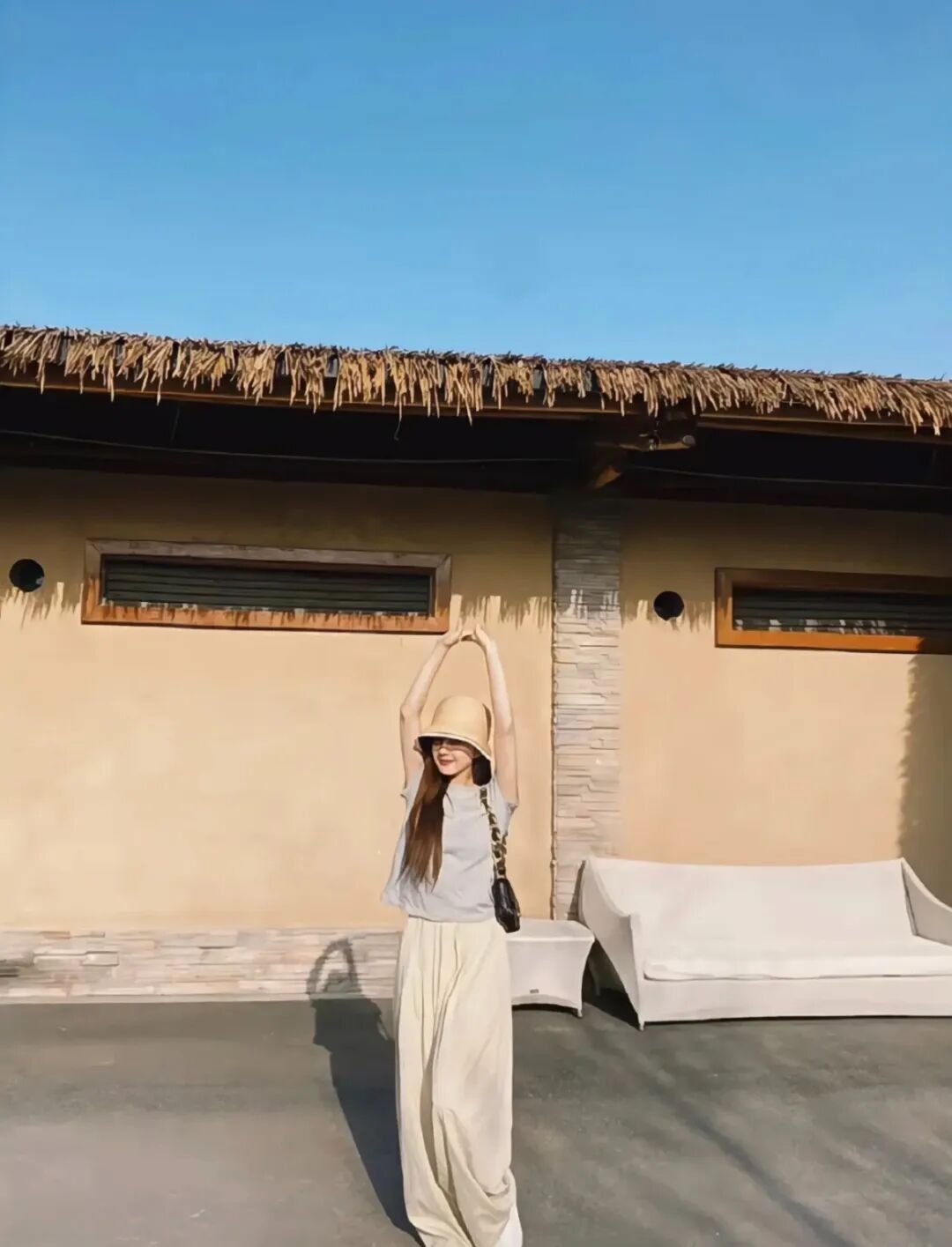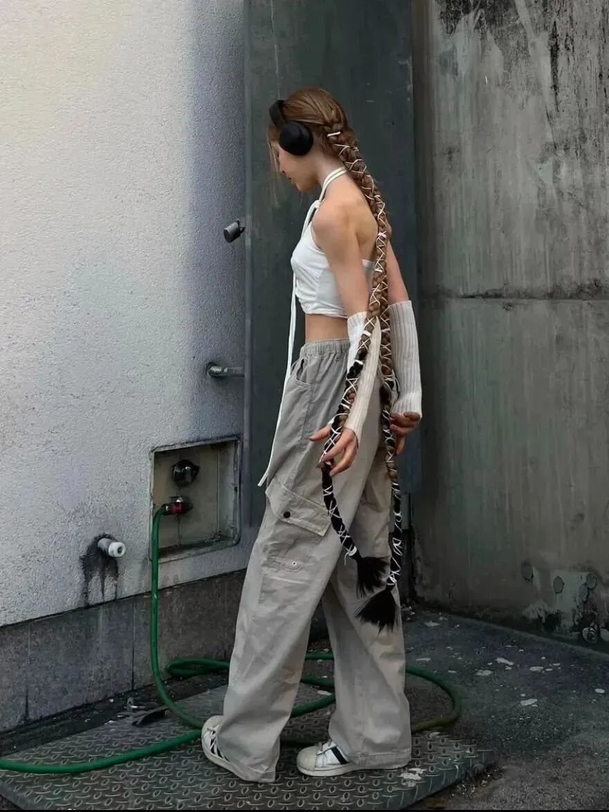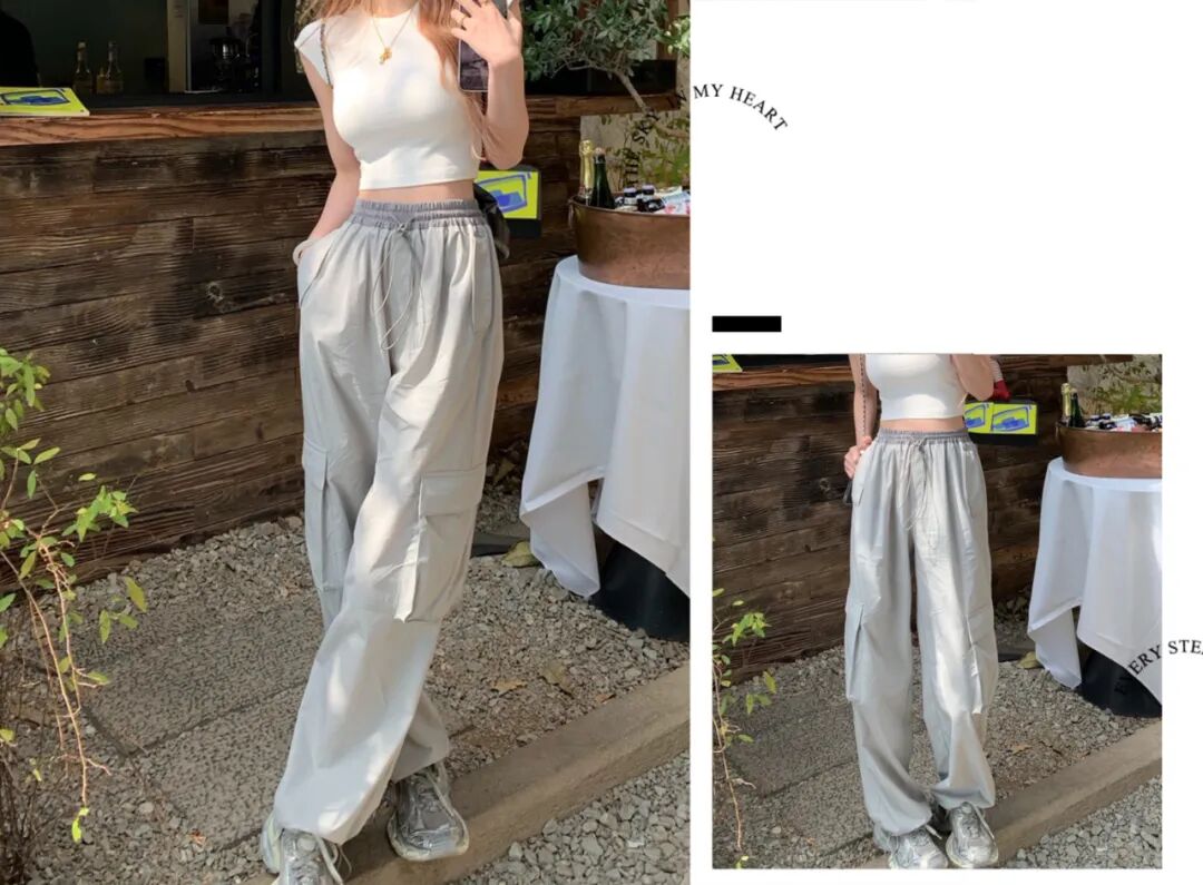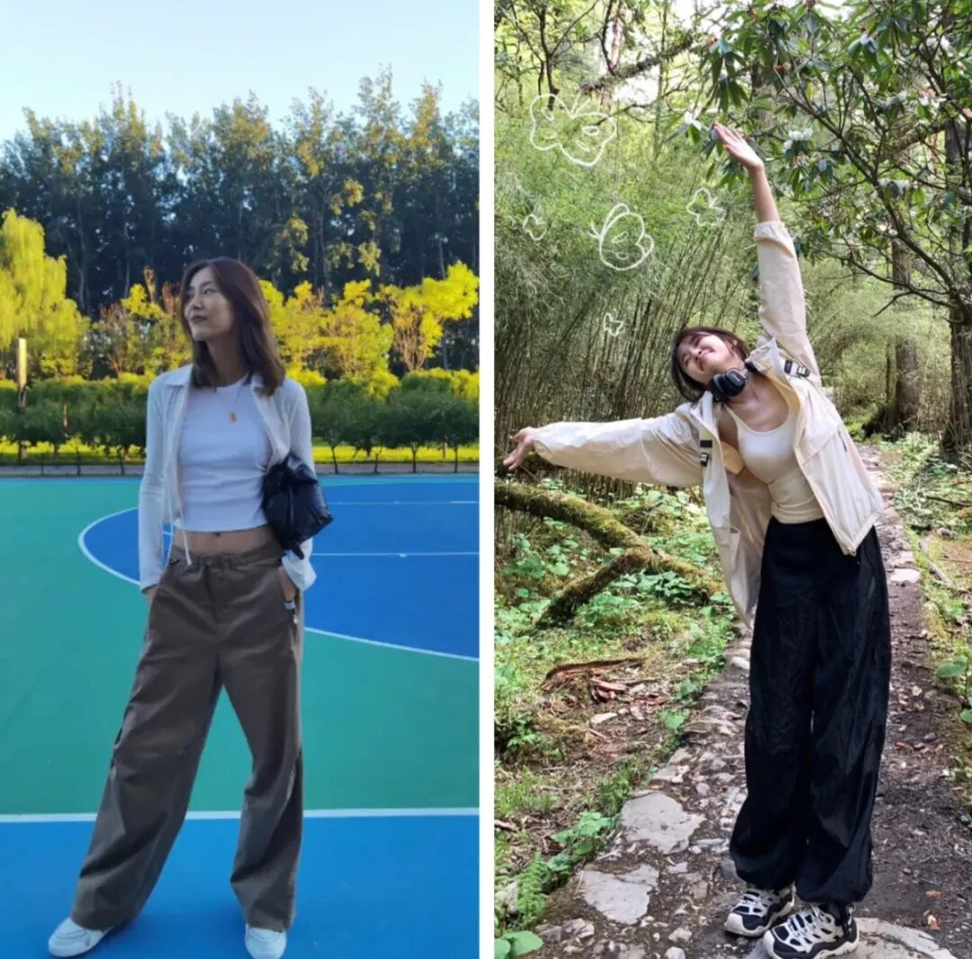 怕晒的姐妹可以参考大表姐的穿搭,防晒衣+背心+工装裤,酷酷的展示一点小曲线,显瘦又实用,运动外出简单又时髦。