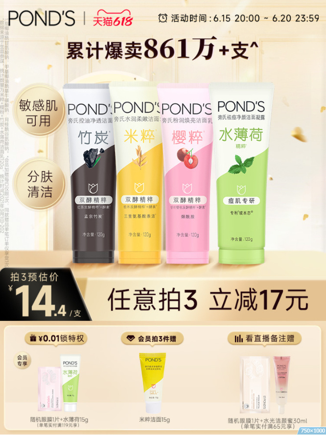 种草time:券后拍3件仅需54元到手!拍3件共到手120g*3支,会员拍3件送洁面15g,备注旁氏大卖再加送眼膜1片+洁颜蜜30ml,凑满减预计41.97左右到手!