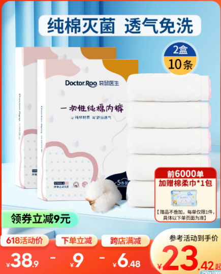 种草time:券后仅需29.9元到手!前6000单赠棉柔巾*1包,拍M-XL尺寸的,凑满减预计23.4左右到手,还有2XL/3XL的要贵点,出去玩一定要带一次性内裤,不仅解放双手还干净卫生,像是孕妈月子期、懒癌患者都可以冲~